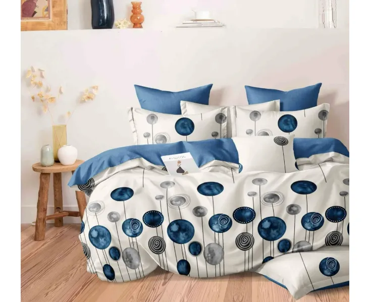 Lenjerie de Pat pentru 2 persoane cu 6 piese confectionata din Bumbac Finet.