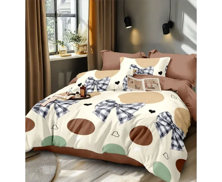 Lenjerie de Pat pentru 2 persoane cu 6 piese confectionata din Bumbac Finet.