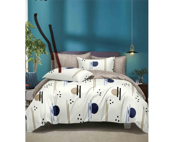 Lenjerie de Pat pentru 2 persoane cu 6 piese confectionata din Bumbac Finet.