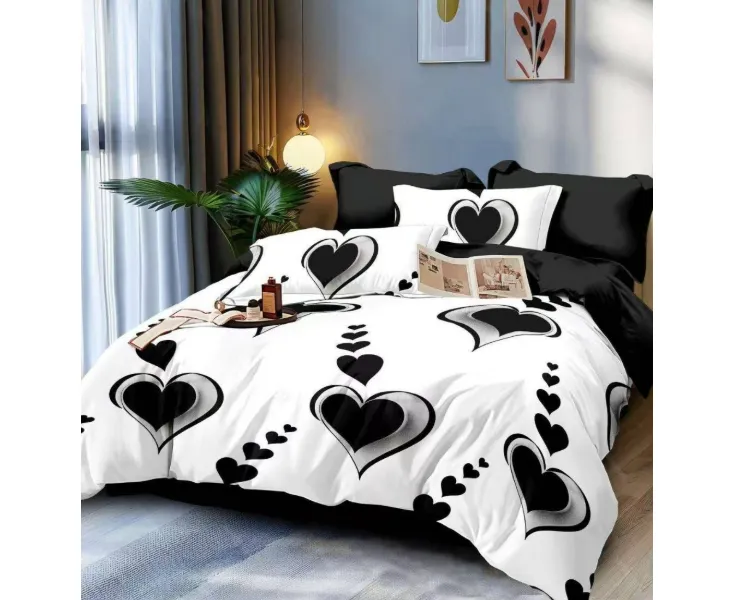 Lenjerie de Pat pentru 2 persoane cu 6 piese confectionata din Bumbac Finet.