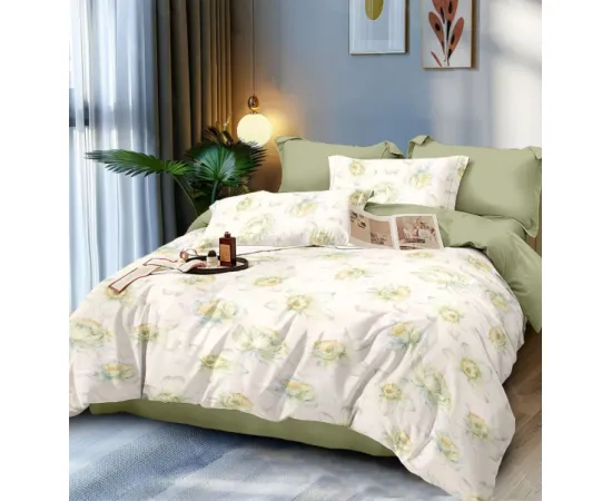 Lenjerie de Pat pentru 2 persoane cu 6 piese confectionata din Bumbac Finet.