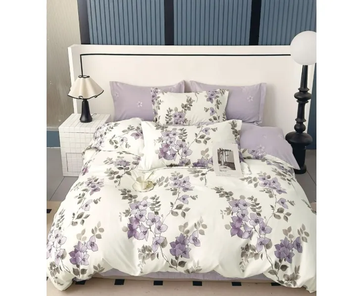 Lenjerie de Pat pentru 2 persoane cu 6 piese confectionata din Bumbac Finet.