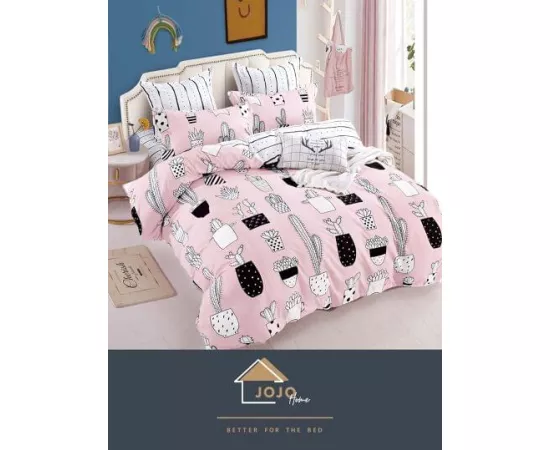 Lenjerie de Pat, Bumbac Finet, 6 Piese, Pat Dublu -JO40