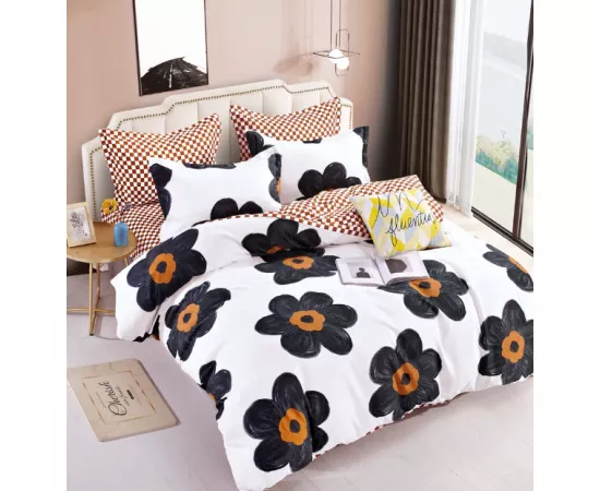 Lenjerie de Pat pentru 2 persoane cu 6 piese confectionata din Bumbac Finet.
