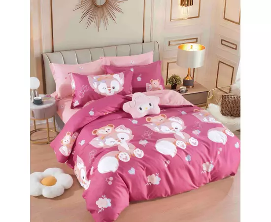 Lenjerie de Pat pentru 2 persoane cu 6 piese confectionata din Bumbac Finet.