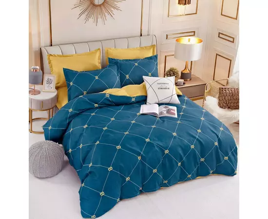 Lenjerie de Pat pentru 2 persoane cu 6 piese confectionata din Bumbac Finet.