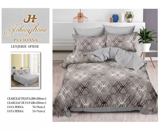 Lenjerie de Pat pentru 2 persoane cu 6 piese confectionata din Bumbac Finet.