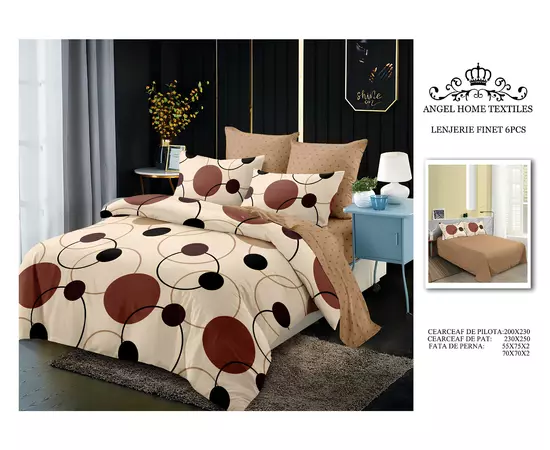 Lenjerie de Pat pentru 2 persoane cu 6 piese, confectionata din Bumbac Finet.
