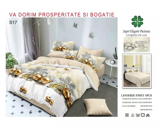 Lenjerie de Pat Bumbac Finet de Craciun, 1 Persoana - PUC220