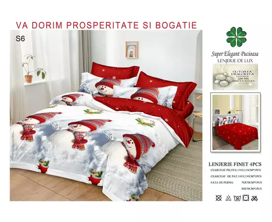 Lenjerie de Pat Bumbac Finet de Craciun, 1 Persoana - PUC221