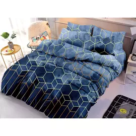 Lenjerie de pat bumbac, model cu cerb, negru si albastru - CR14