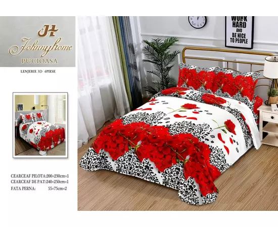 Lenjerie de Pat Bumbac Satinat 3D cu 4 Piese- SIPRB-312
