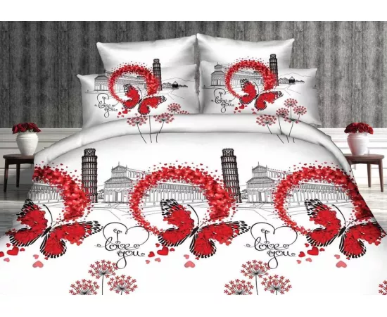 Lenjerie de Pat Bumbac Satinat 3D cu 4 Piese- SIPRB-459