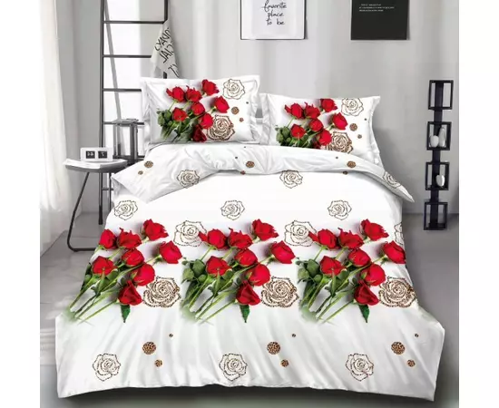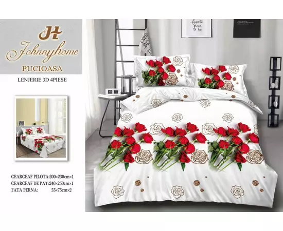 Lenjerie pentru pat dublu de 2 persoane, confectionata din bumbac satinat.