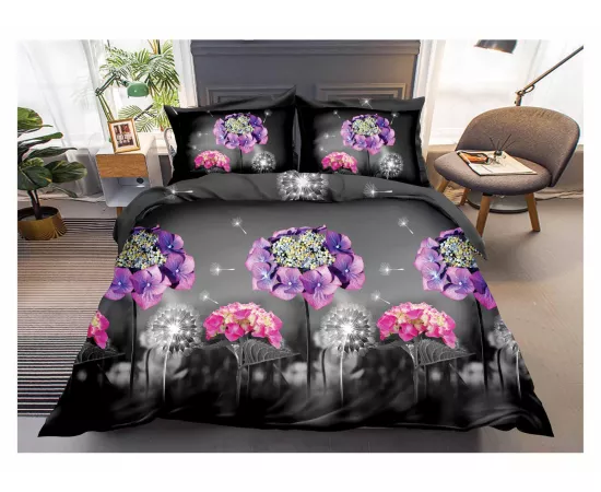 Lenjerie de Pat Bumbac Satinat 3D cu 4 Piese- SIPRB-489