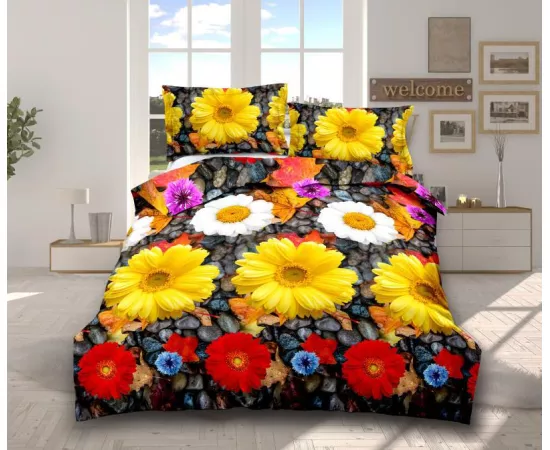 Lenjerie de Pat Bumbac Satinat 3D cu 4 Piese- SIPRB-502