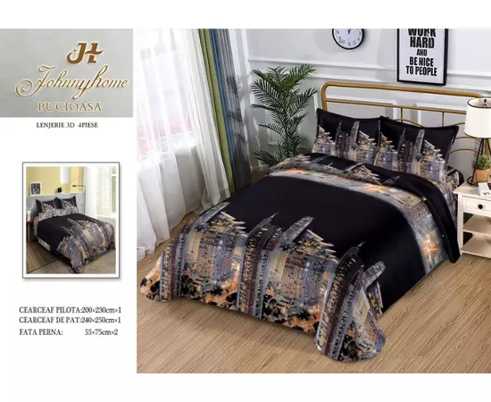 Lenjerie pentru pat dublu de 2 persoane, confectionata din bumbac satinat.