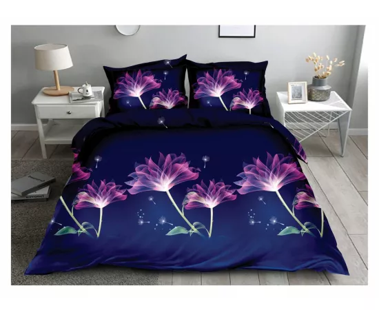 Lenjerie de Pat Bumbac Satinat 3D cu 4 Piese- SIPRB-533