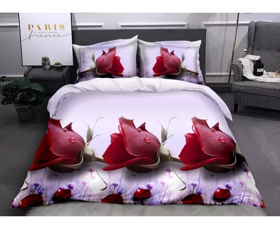 Lenjerie de Pat Bumbac Satinat 3D cu 4 Piese- SIPRB-567