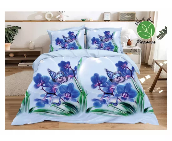 Lenjerie pentru pat dublu de 2 persoane, confectionata din bumbac satinat.