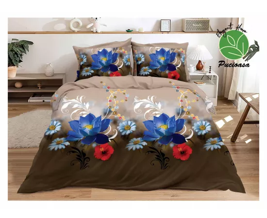 Lenjerie pentru pat dublu de 2 persoane, confectionata din bumbac satinat.