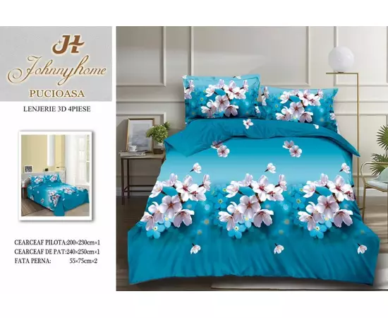 Lenjerie pentru pat dublu de 2 persoane, confectionata din bumbac satinat.