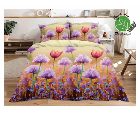 Lenjerie pentru pat dublu de 2 persoane, confectionata din bumbac satinat.