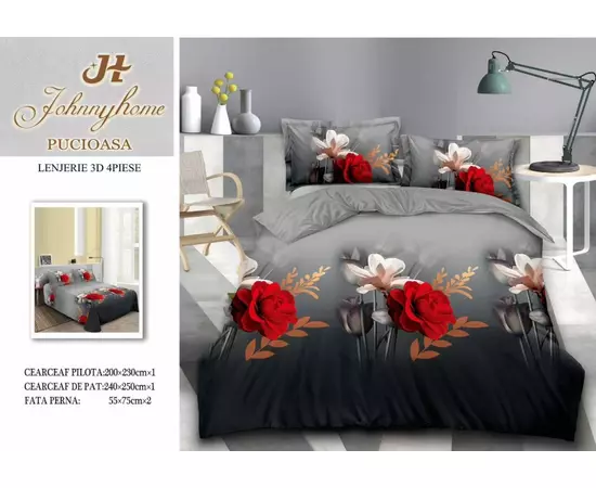 Lenjerie pentru pat dublu de 2 persoane, confectionata din bumbac satinat.