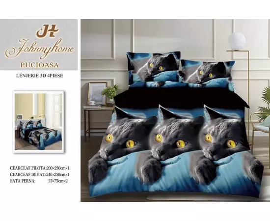 Lenjerie pentru pat dublu de 2 persoane, confectionata din bumbac satinat.