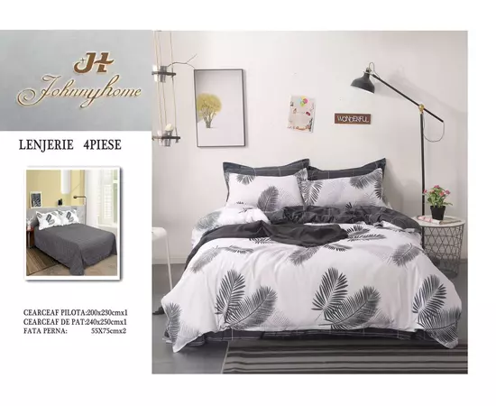 Materialul din care este confectionată lenjeria este bumbac de calitate superioara cu o textura fina, moale si foarte placuta la atingere.