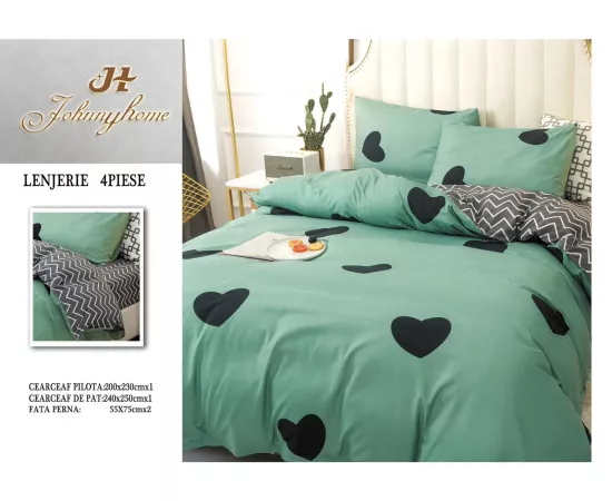 Materialul din care este confectionată lenjeria este bumbac de calitate superioara cu o textura fina, moale si foarte placuta la atingere.