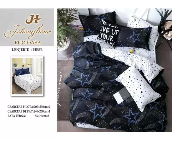 Materialul din care este confectionată lenjeria este bumbac de calitate superioara cu o textura fina, moale si foarte placuta la atingere.