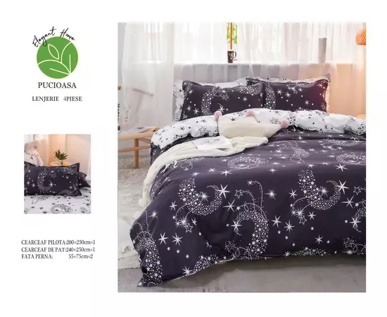 Materialul din care este confectionată lenjeria este bumbac de calitate superioara cu o textura fina, moale si foarte placuta la atingere.