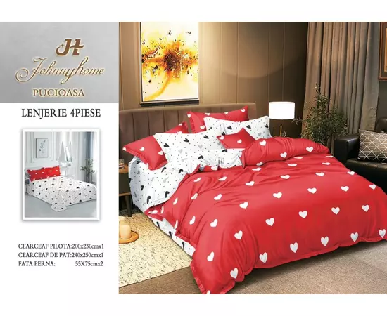 Materialul din care este confectionată lenjeria este bumbac de calitate superioara cu o textura fina, moale si foarte placuta la atingere.