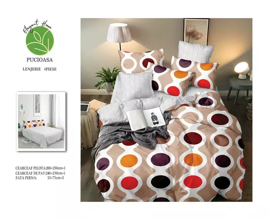 Materialul din care este confectionată lenjeria este bumbac de calitate superioara cu o textura fina, moale si foarte placuta la atingere.