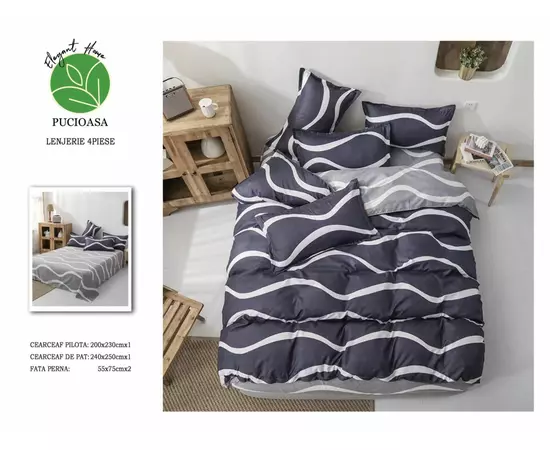 Materialul din care este confectionată lenjeria este bumbac de calitate superioara cu o textura fina, moale si foarte placuta la atingere.