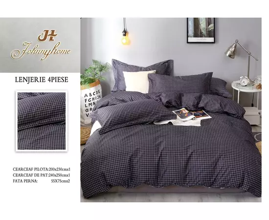 Materialul din care este confectionată lenjeria este bumbac de calitate superioara cu o textura fina, moale si foarte placuta la atingere.