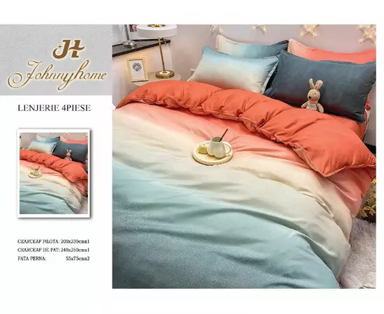Materialul din care este confectionată lenjeria este bumbac de calitate superioara cu o textura fina, moale si foarte placuta la atingere.