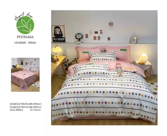 Materialul din care este confectionată lenjeria este bumbac de calitate superioara cu o textura fina, moale si foarte placuta la atingere.