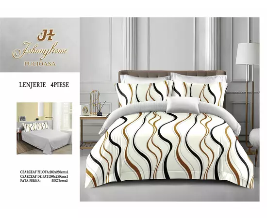Materialul din care este confectionată lenjeria este bumbac de calitate superioara cu o textura fina, moale si foarte placuta la atingere.