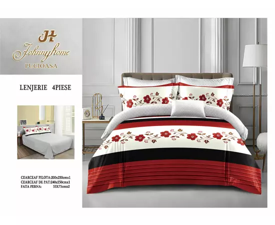 Materialul din care este confectionată lenjeria este bumbac de calitate superioara cu o textura fina, moale si foarte placuta la atingere.