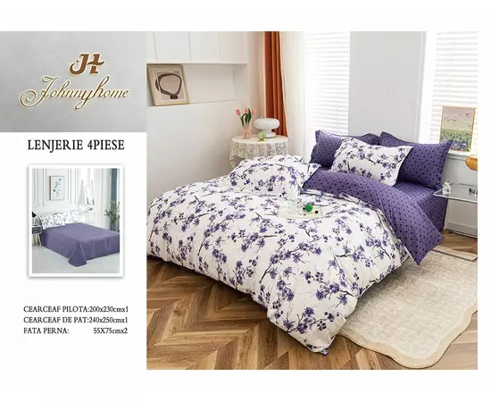 Materialul din care este confectionată lenjeria este bumbac de calitate superioara cu o textura fina, moale si foarte placuta la atingere.