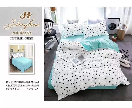 Materialul din care este confectionată lenjeria este bumbac de calitate superioara cu o textura fina, moale si foarte placuta la atingere.