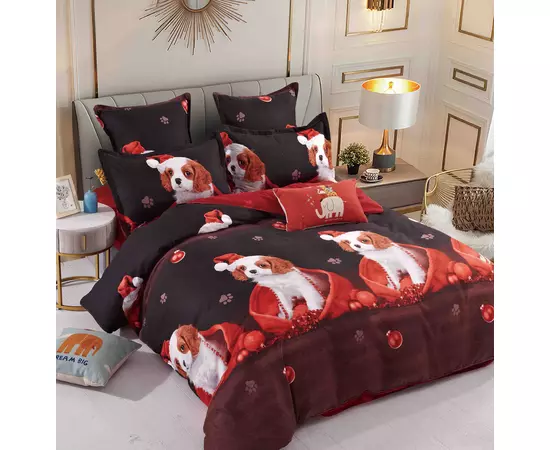 Lenjerie de Pat Bumbac Finet cu Elastic, Catelusi de Craciun - JO595