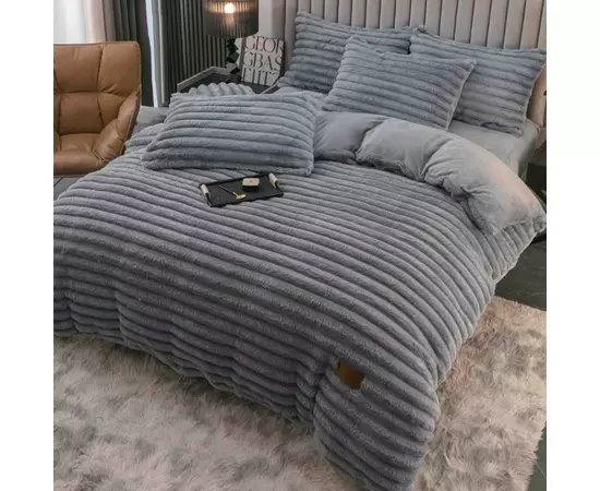 Lenjeria de pat Cocolino, cu cearceaf cu elastic și 4 piese, este ideală pentru un somn confortabil și relaxant, oferind o combinație perfectă între stil modern și funcționalitate. Realizată din blană de iepure artificială, acest set este remarcabil pentru textura sa moale și pufoasă, oferind o senzație caldă și plăcută pe timpul nopților reci.