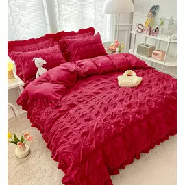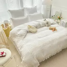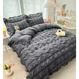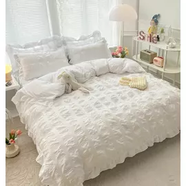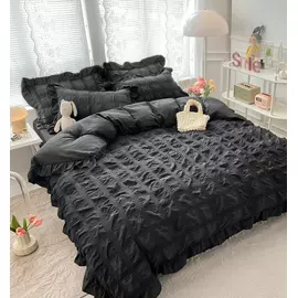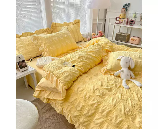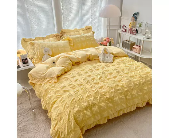 Lenjerie de Pat Dublu, Bumbac Finet-Crepona, 6 Piese, Galben - JO252