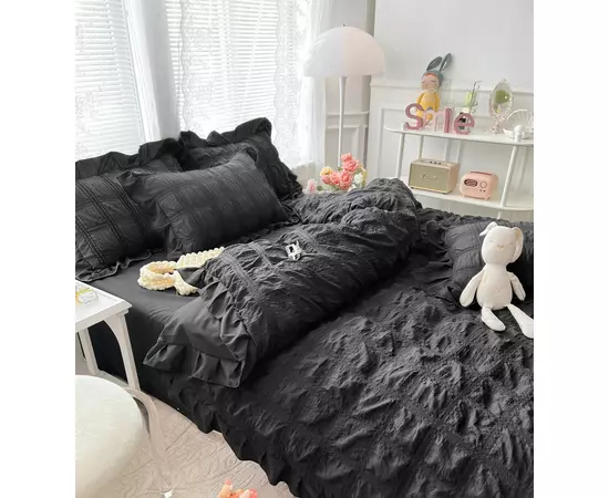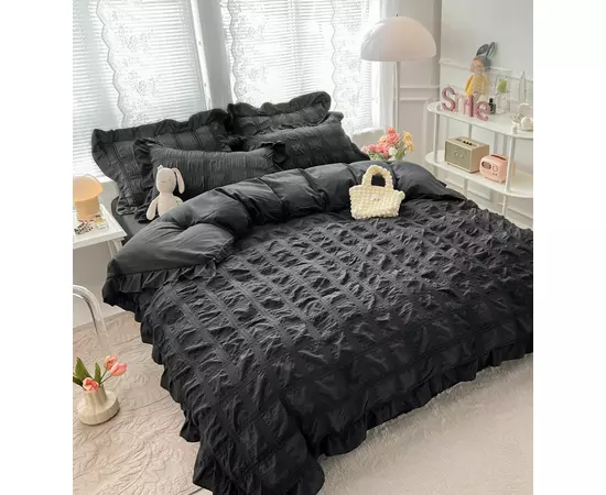 Lenjerie de Pat Dublu, Bumbac Finet-Creponat, 6 Piese,Gri Inchis - JO305