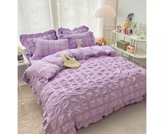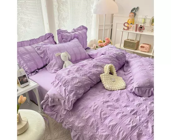 Lenjerie de Pat Dublu, Bumbac Finet-Creponat, 6 Piese, Lila - JO306