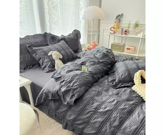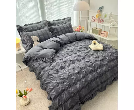 Lenjerie de Pat Dublu, Bumbac Finet-Creponat, 6 Piese, Gri -JO254