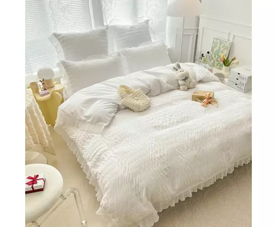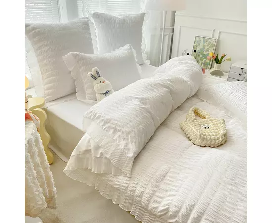 Lenjerie de Pat Dublu, Bumbac Finet-Creponat cu Margine, 6 Piese, Alb- JO310